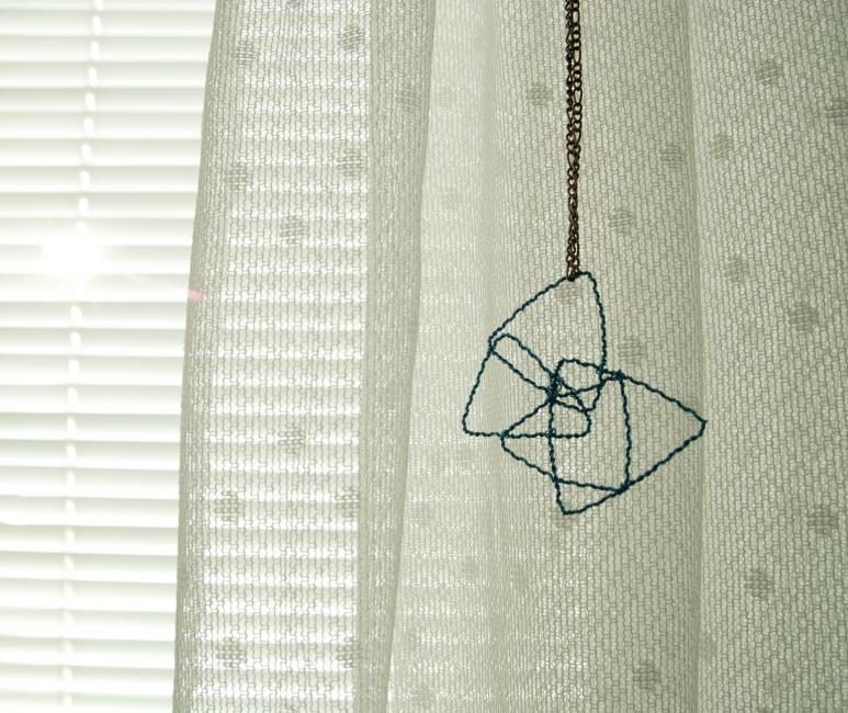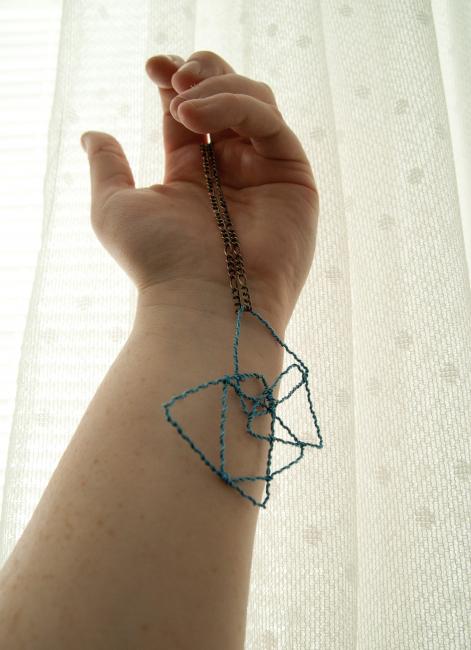 Av någon anledning har jag gått och nynnat på Min hatt den har tre kanter och Det kom en trekantig gubbe in de senaste dagarna. Och idag gjorde jag det här halsbandssmycket.