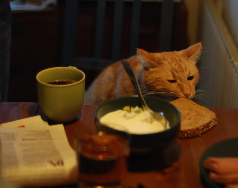 Han dricker svart kaffe också, som det anstår en Rambo.