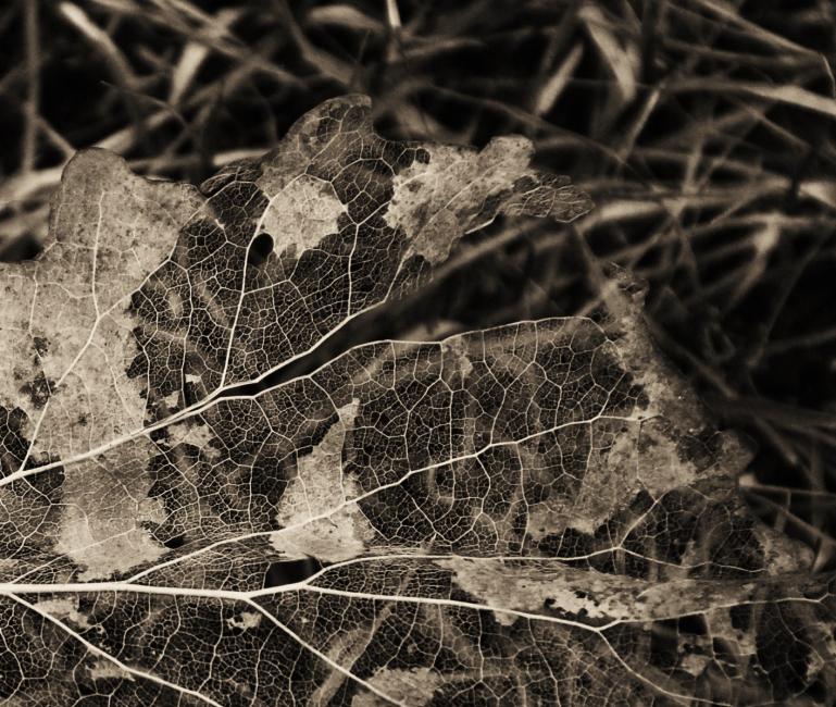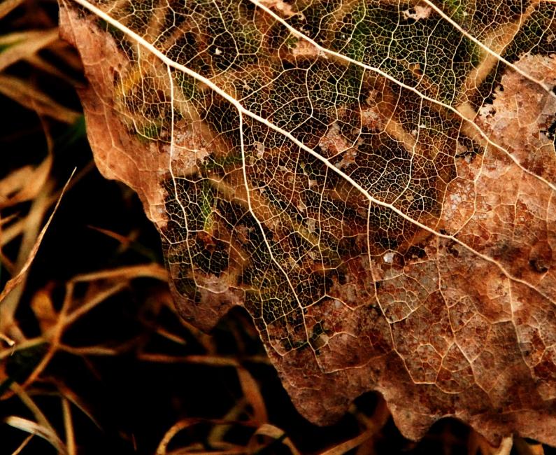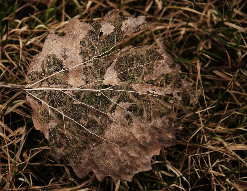 Som små genomskinliga viskningar om vad som för några månader sedan var ett klorofyllstinnt löv.