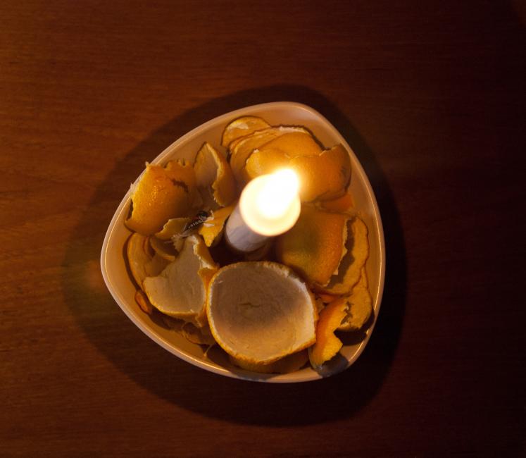 Första ljuset strålar från en hög clementinskal. Är inte det juligt, så säg!?