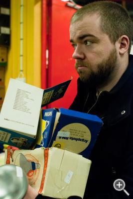 Sedan hittade David fyra gamla 500 watts fotolampor som han illa kvickt tog upp i sin famn. Jag blev lyrisk över lampkartongerna som var original och finfina! Fast lamporna är sannerligen något extra. Man får skydda sig med handen för ögonen, så starkt lyser de.