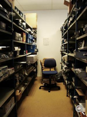 Mannen som öppnade var så ovan vid kunder att han kallt räknade med att vi måste ha kommit fel. Tillslut blev vi insläppta, och leddes bak i lokalen. Till en plats med hyllmeter av smålådor med allehanda pryttlar som förmodligen inte flyttats sedan 70-talet eller nåt.
