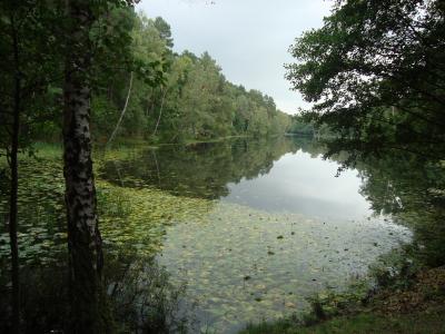 Vi gick runt dammen, vi och diverse pensionärer och hundägare, och det var så tyst och fridfullt. Och när det började dugga lätt så lät det som syrsor som spelade på vattenytan.