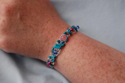 Våren för med sig nya idéer. I helgen har jag jobbat på ett nytt sorts armband. Än är jag inte helt nöjd med låsanordningen; man ska ju inte behöva slita sönder fingrarna innan man lyckas få på sig sitt armband, liksom. Har lite planer på lås som borde funka men det kräver en tur till affären först.