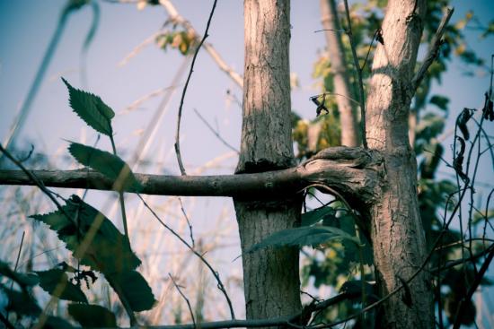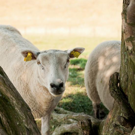 It didn't work out so well. The sheep went all ostrich mode and hid his head in the tree trunk.