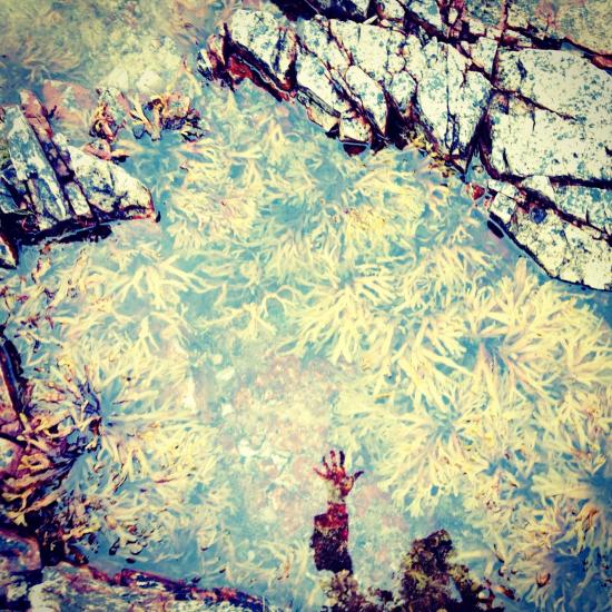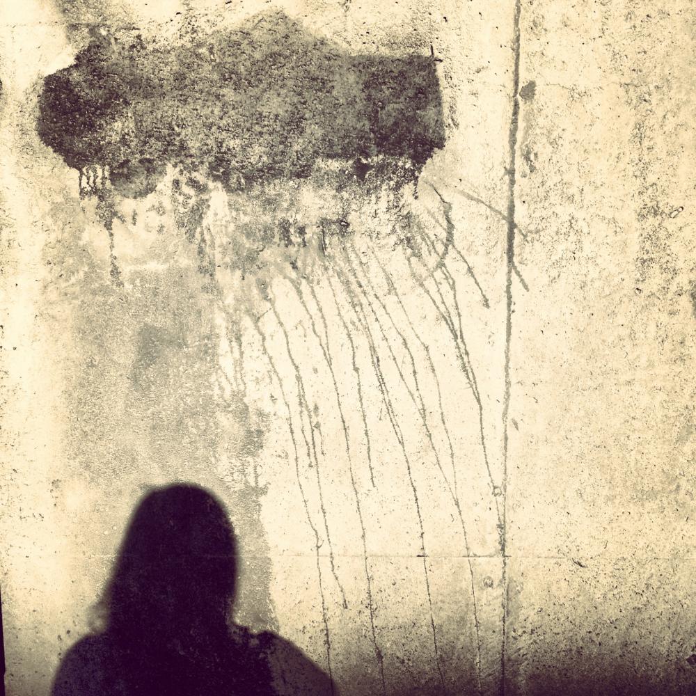 Two shadows of me. The first one in a pond on the cliffs of Vik, and the second one on a wall under an odd shape of grime that looks exactly like a raining cloud.