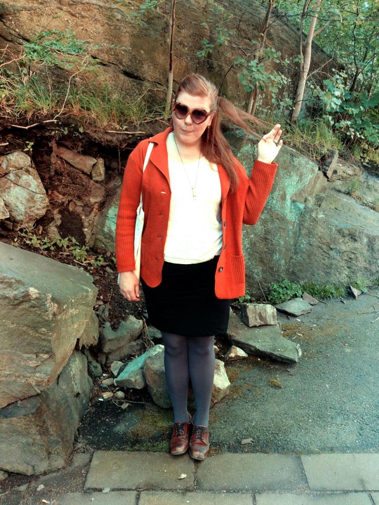 Two of me in my favourite kind of clothes. And the colours is a celebration of autumn coming (Yeah... who am I fooling, I wear these colours all year round - celebrating autumn every season!)!