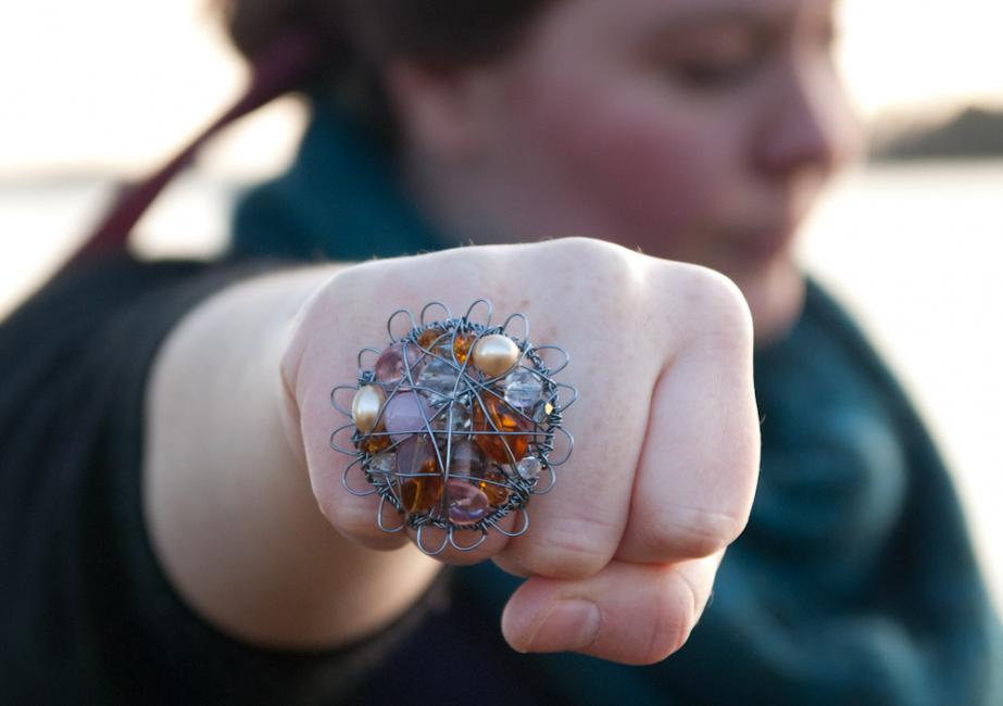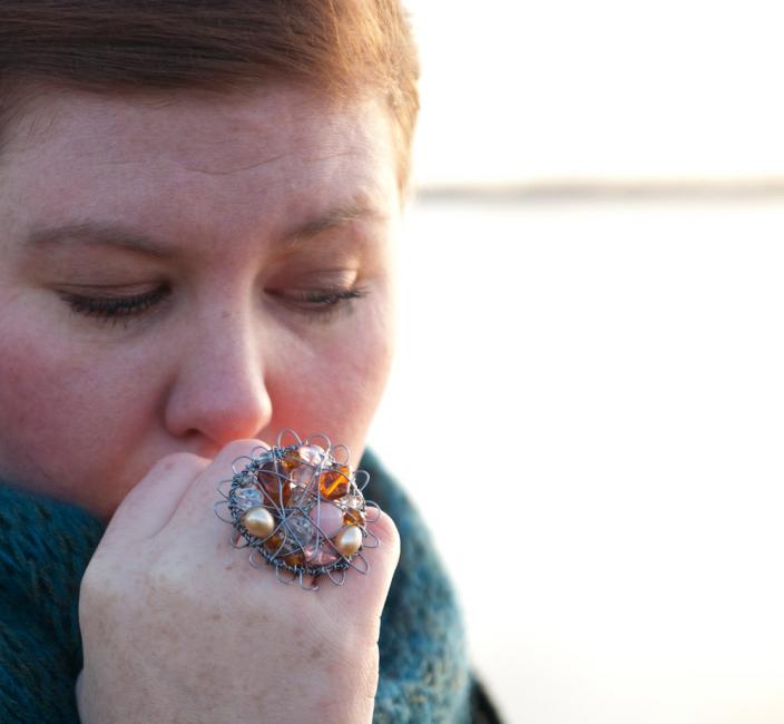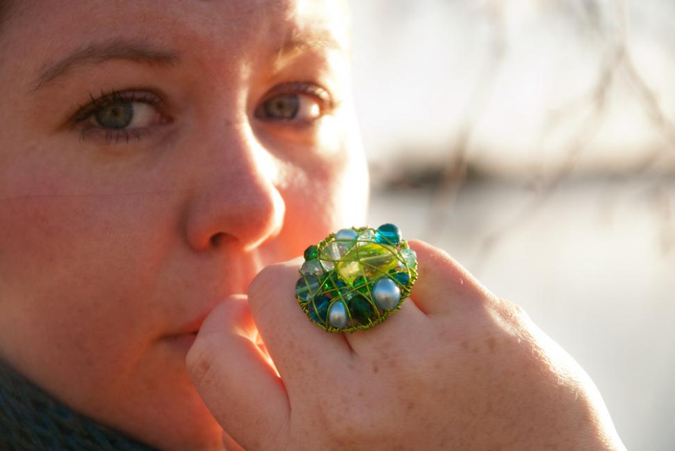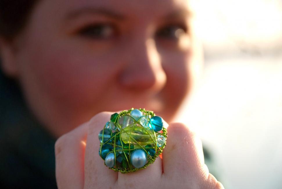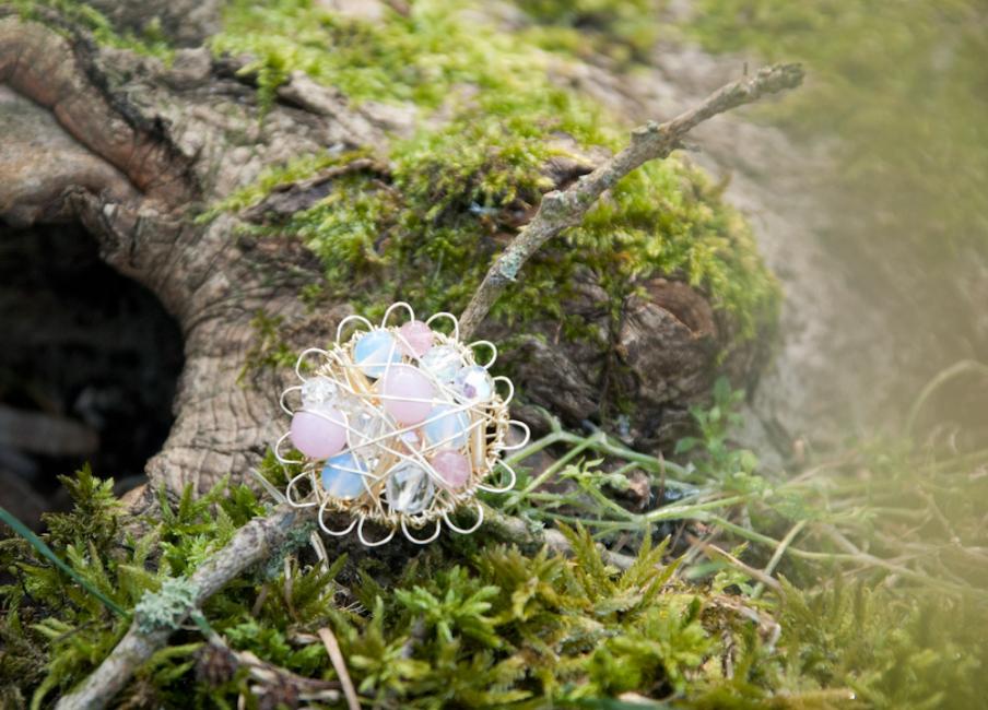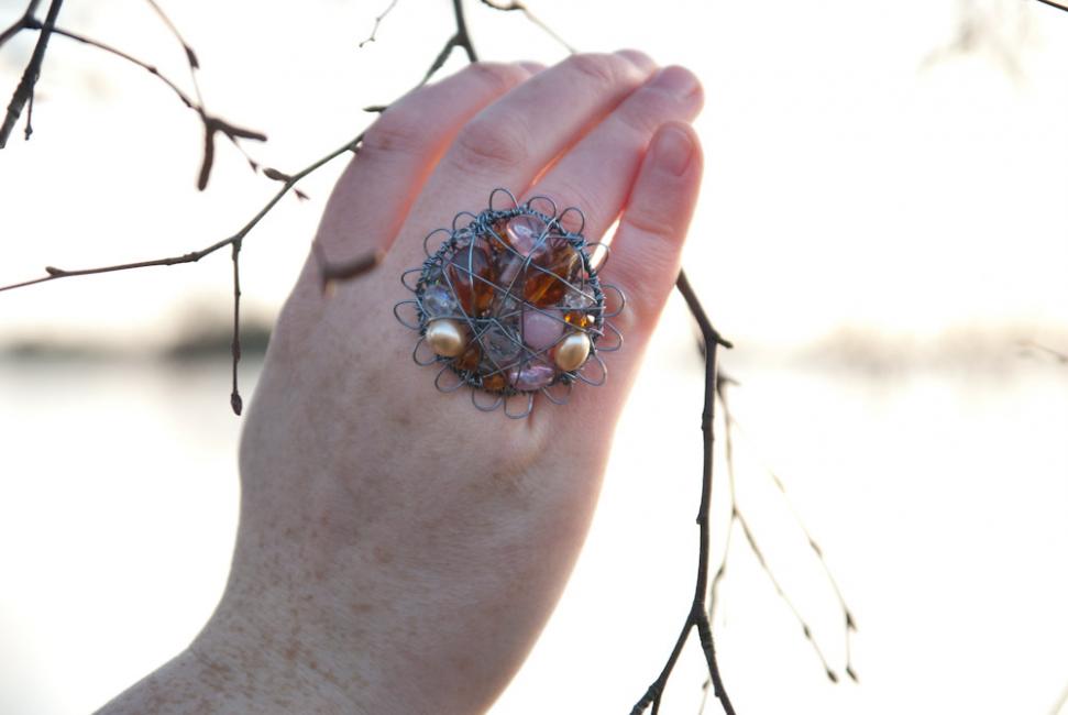 Sedan satte jag igång! Här en ring i champagne och rosa.