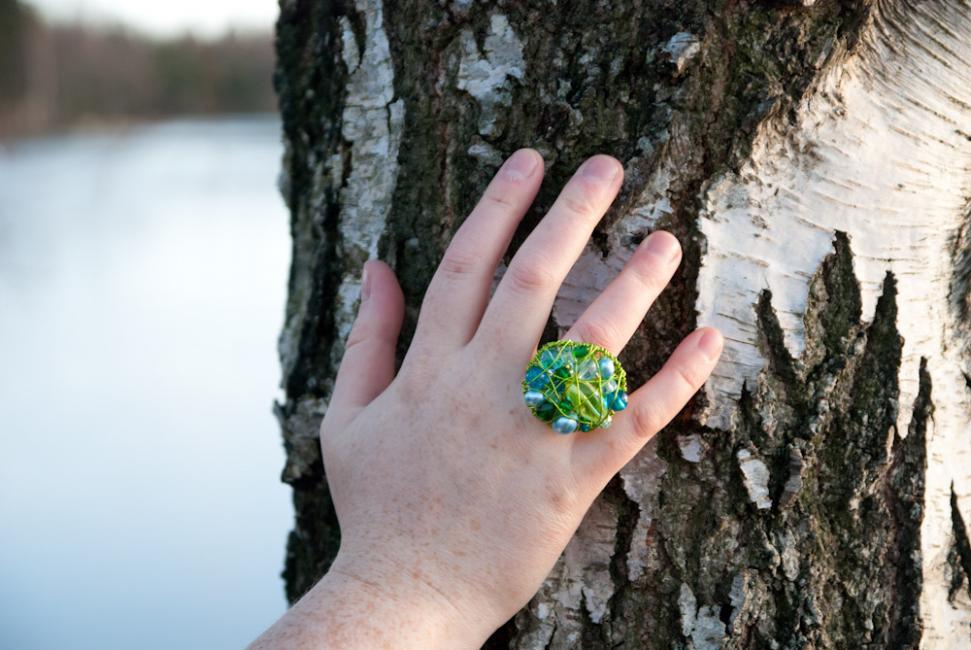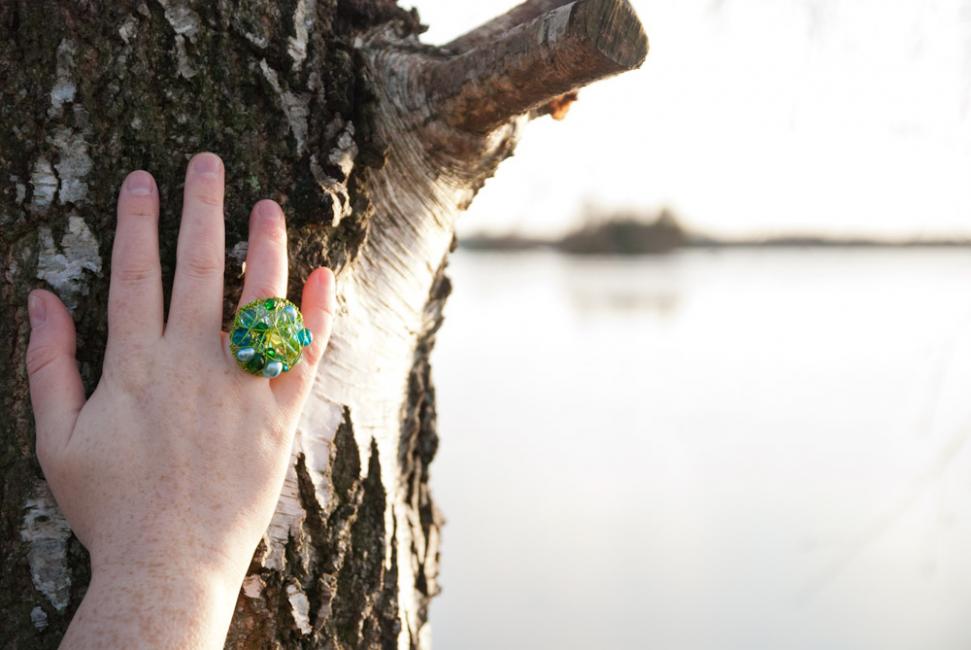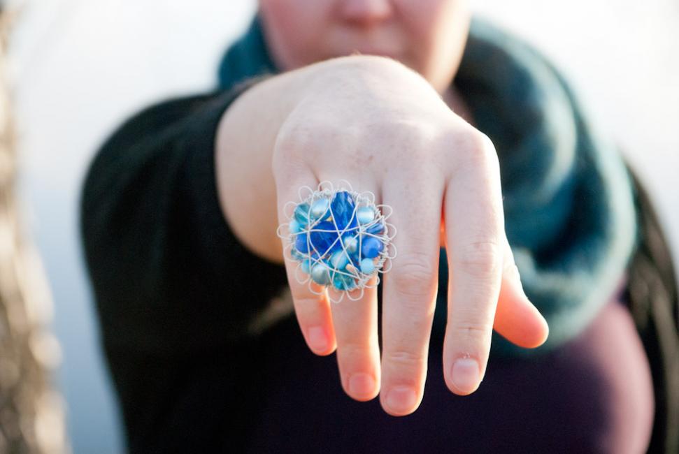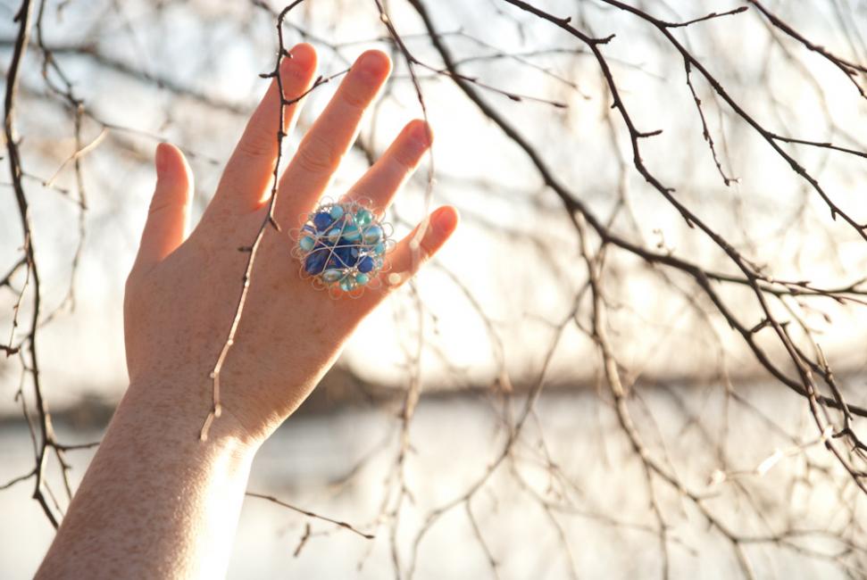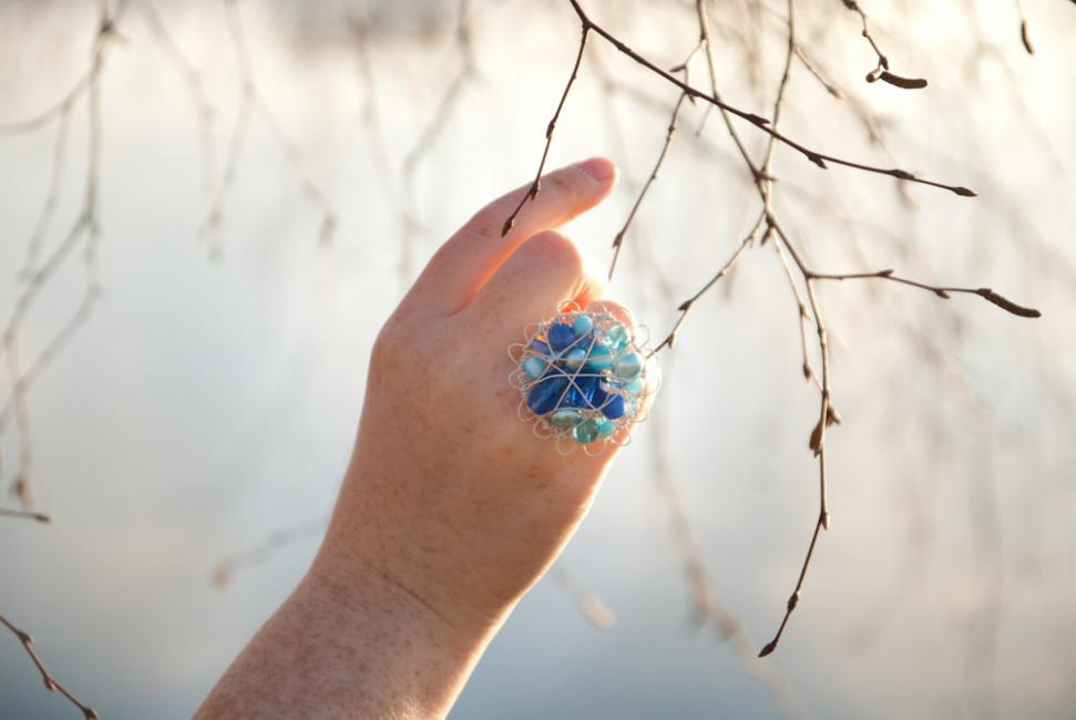 Sedan satte jag igång! Här en ring i champagne och rosa.