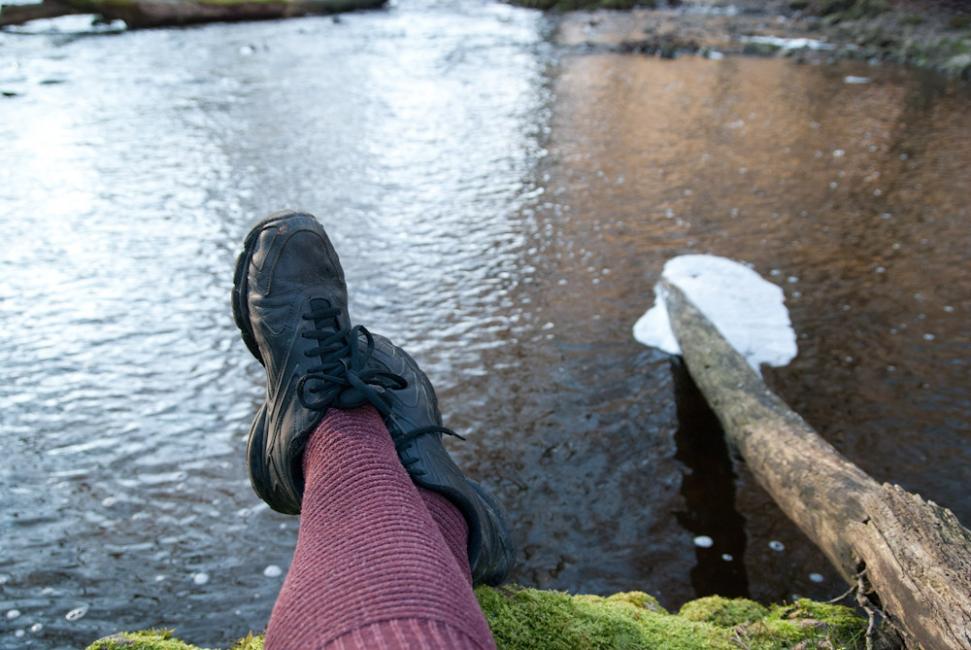 Jag hittade en bäck som var fin och en stubbe att sitta på. Fotriktiga skor hade jag också!