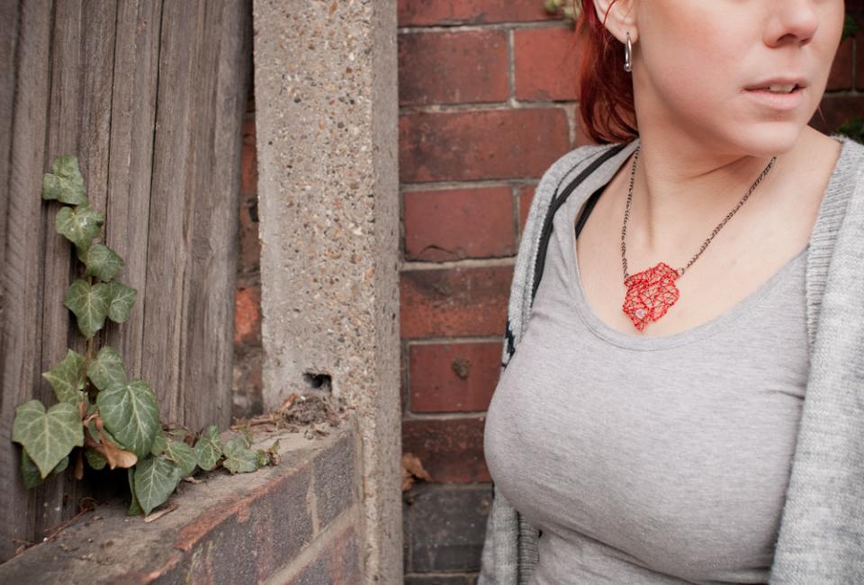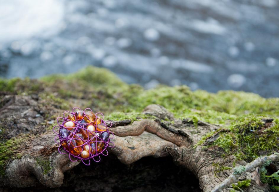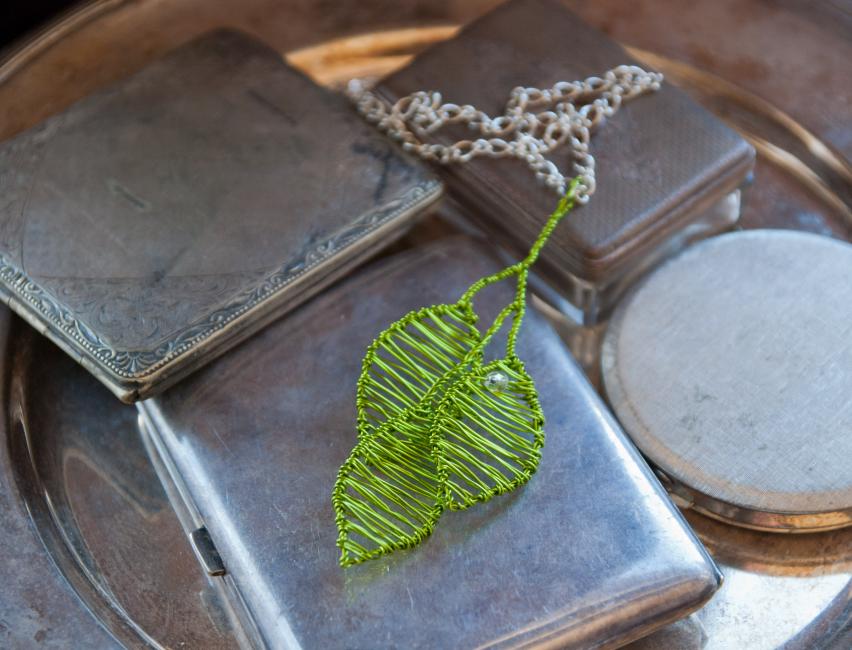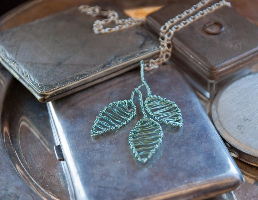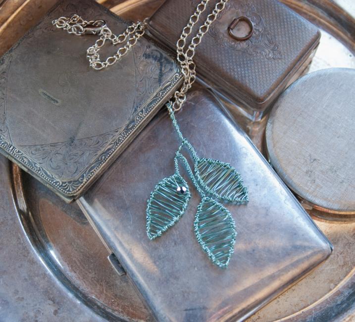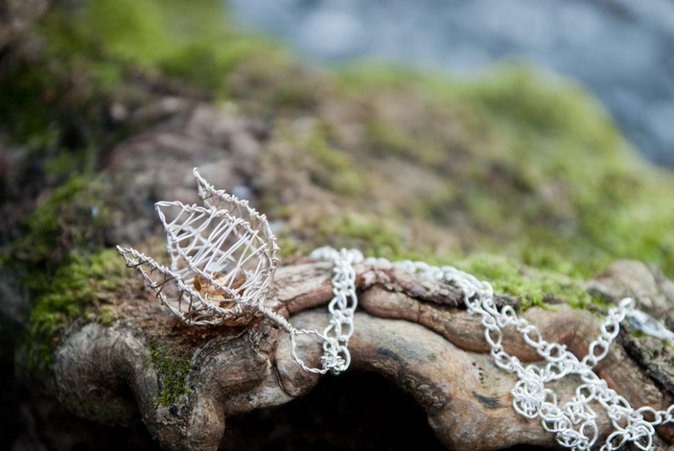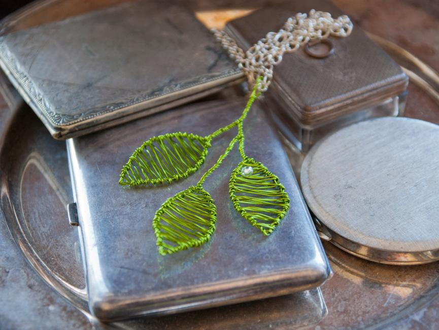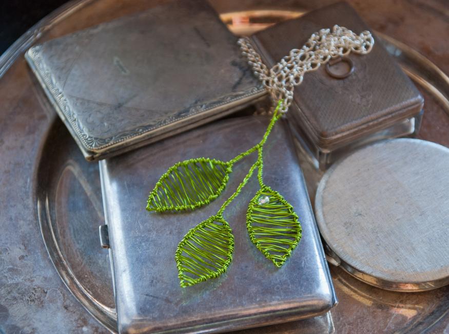 Och en blomberlock i varmsilver och jordbrunt.