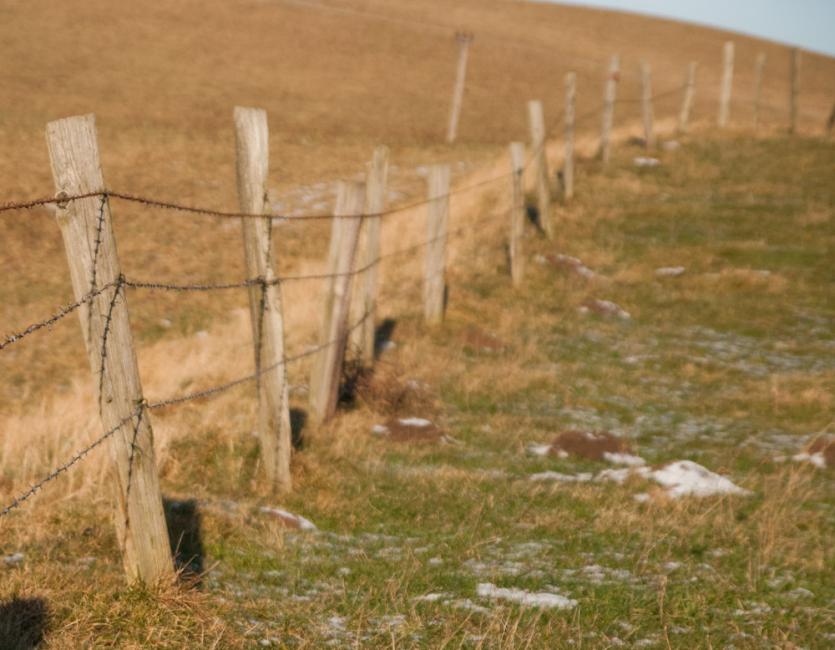 Längs med det här rangliga staketet.