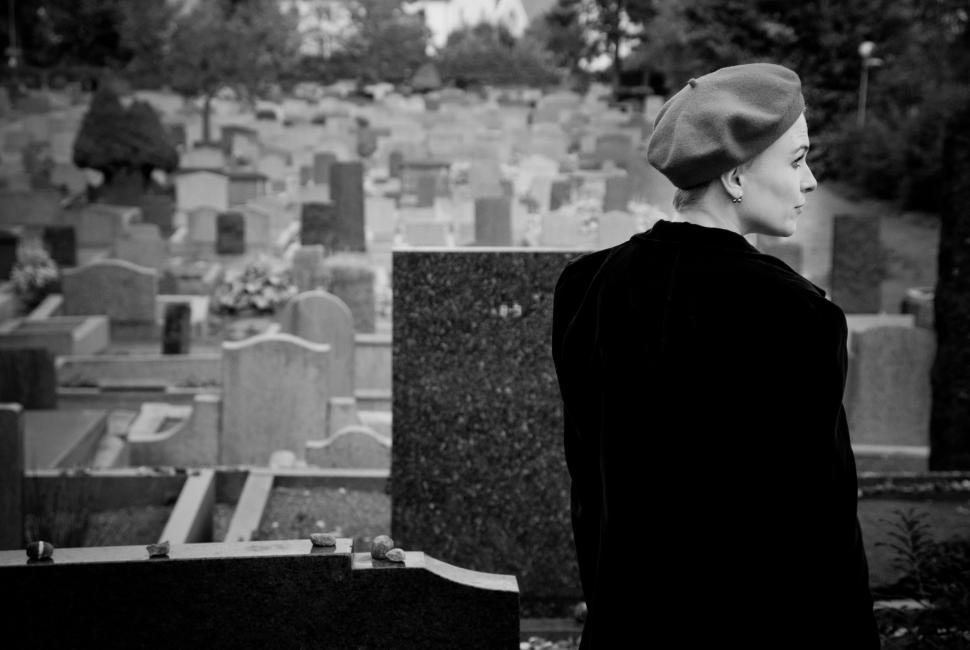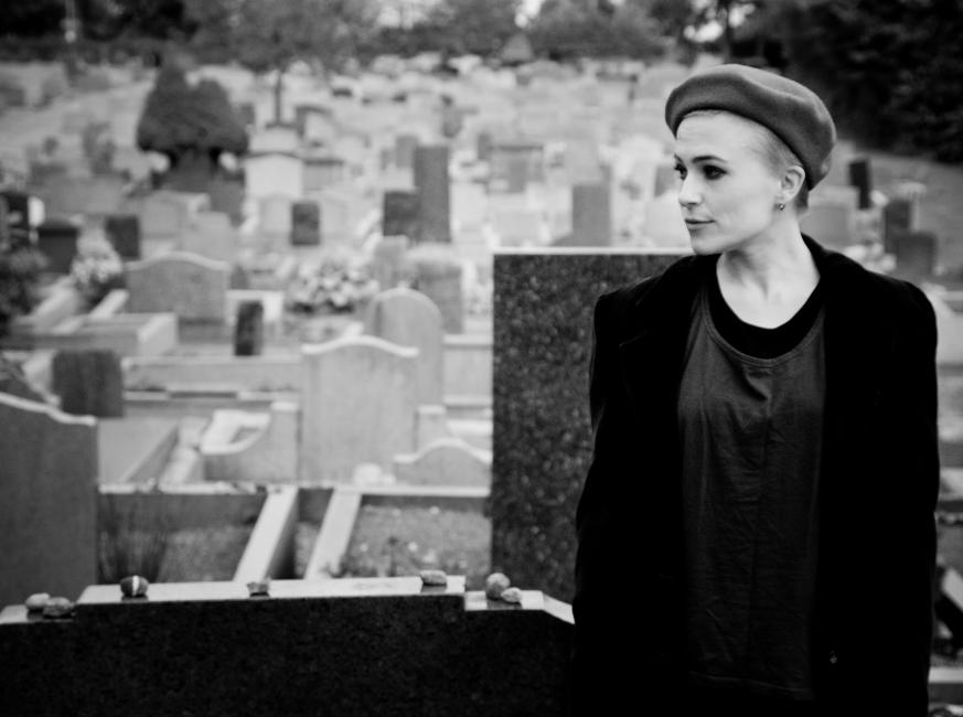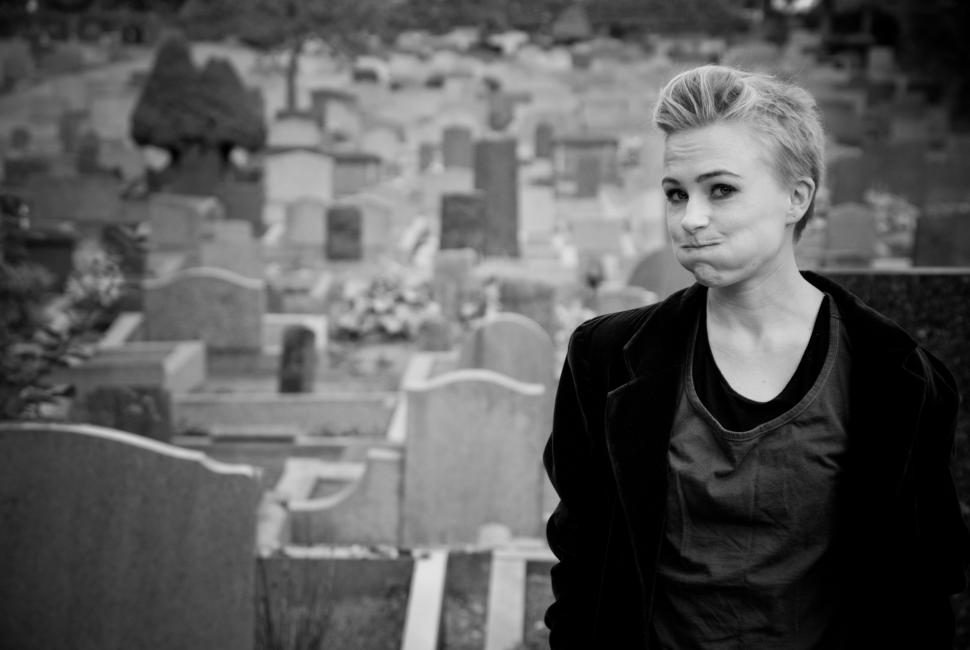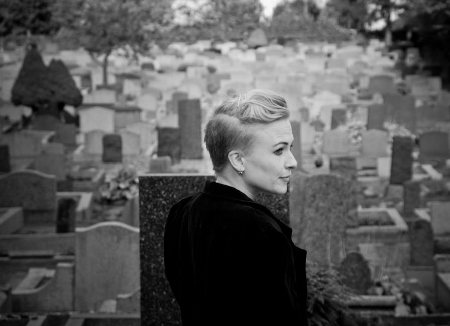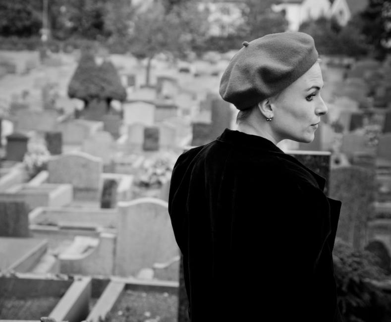 På våra kvällspromenader passerar David och jag alltid en judisk kyrkogård där alla gravarna är vända åt samma håll. Jag har länge tänkt att jag vill fotografera någon där med ryggen mot kameran och ansiktet halvskymt. Inga namn syns, bara alla dessa tomma gravstenar som tillhör människor vi aldrig lärde känna.