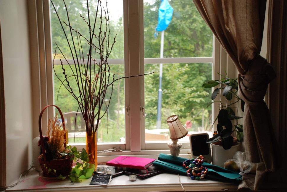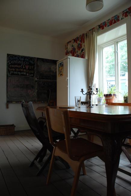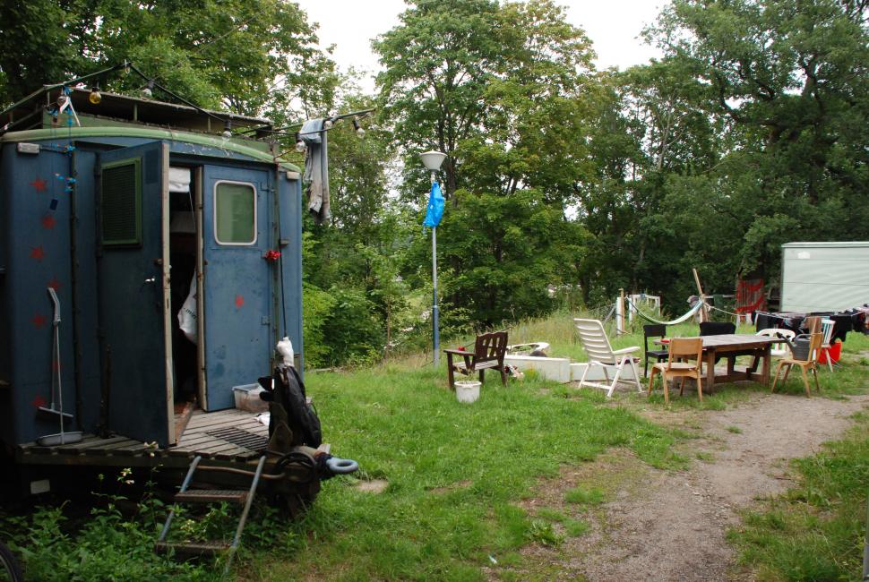 Det var ett rätt magiskt ställe. Ett rådjur stod i trädgården, mitt bland tvättlinor och utemöbler. Två små barnkistor låg travade på varandra vid en husfasad. Vad de skulle användas till kan man ju fundera över. Vackra gamla cirkusvagnar var bebodda runtomkring huset som fungerade som gemensamhetsområde.