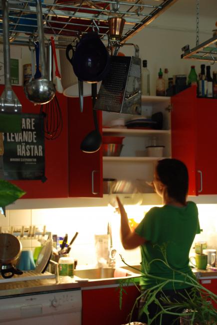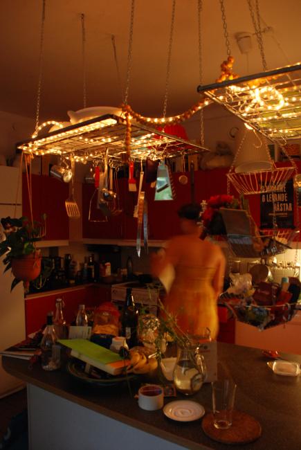 Värdinnan var inte hemma än. Systern och jag lagade mat i cirkusköket och hörde svensk cirkustjej säga till dansk cirkuskille att han skulle komma och släppa ut paddan som hoppat ner i källaren.