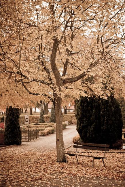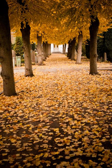 Sedan gick vi en sväng på kyrkogården. Det var så vackra gula löv på träden och jag dras ju mot sådant, som ni vet.