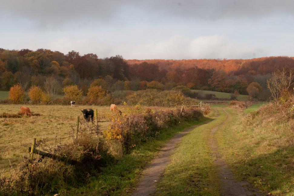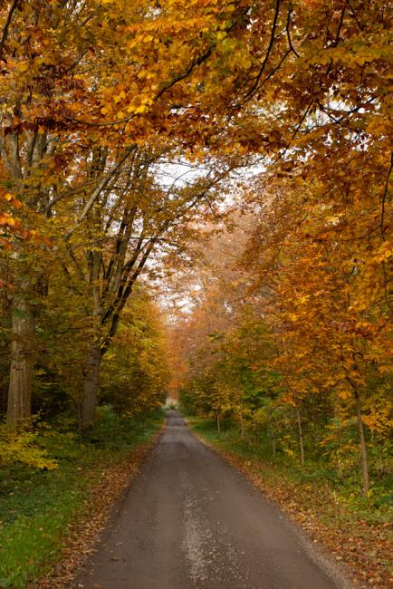 Sedan testade vi en ny väg mellan fälten som ledde in i en bokskog. Där var det helt magiskt vackert. Överallt såg det ut som ett vykort.