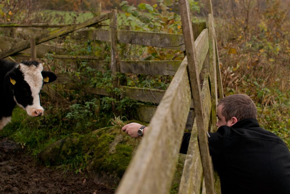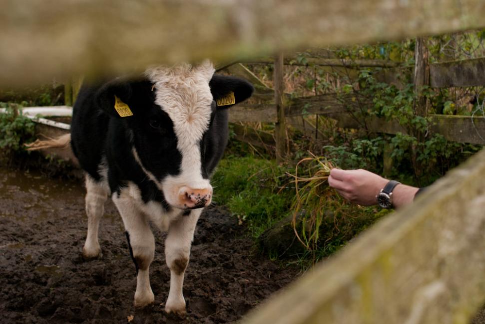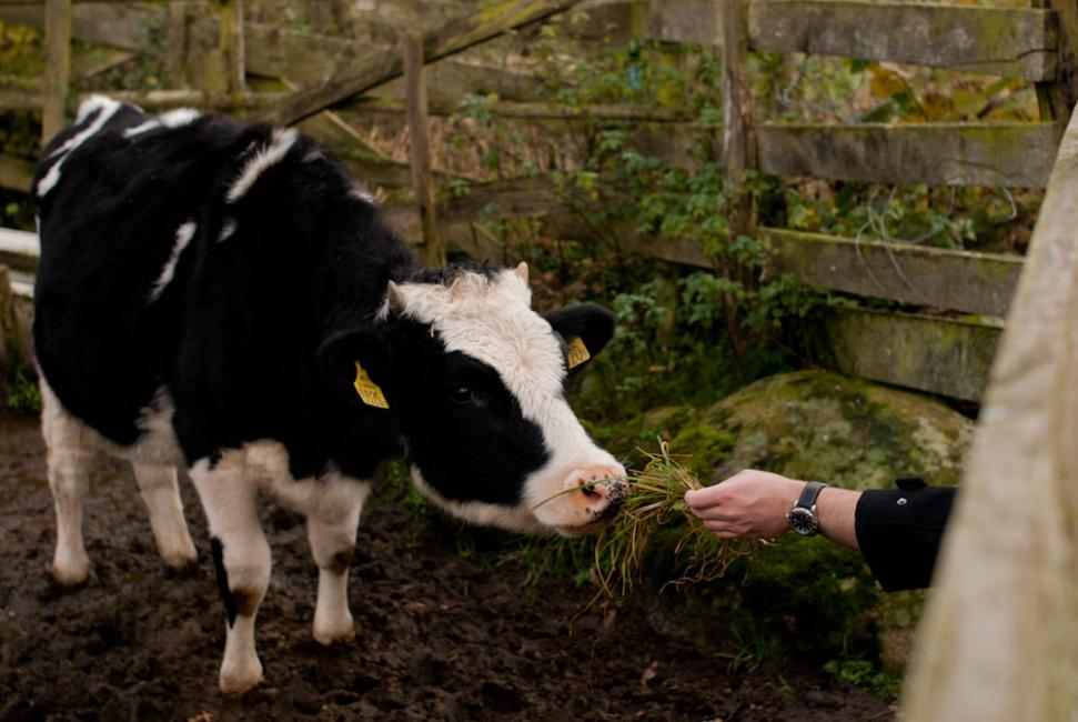 David erbjöd kossorna gräs. Kossorna var skeptiska.