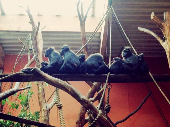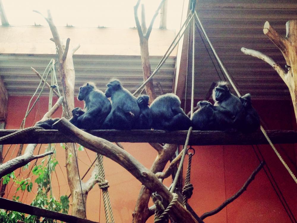 My favourites of the day must have been these monkeys sitting in a line cuddling. If you look closely you can actually see a tiny arm in the middle that doesn't seem to belong to anyone. It's a baby squeezed betweeen the two larger ones! My heart almost melted and I could have stood there looking at them for hours, I think.
