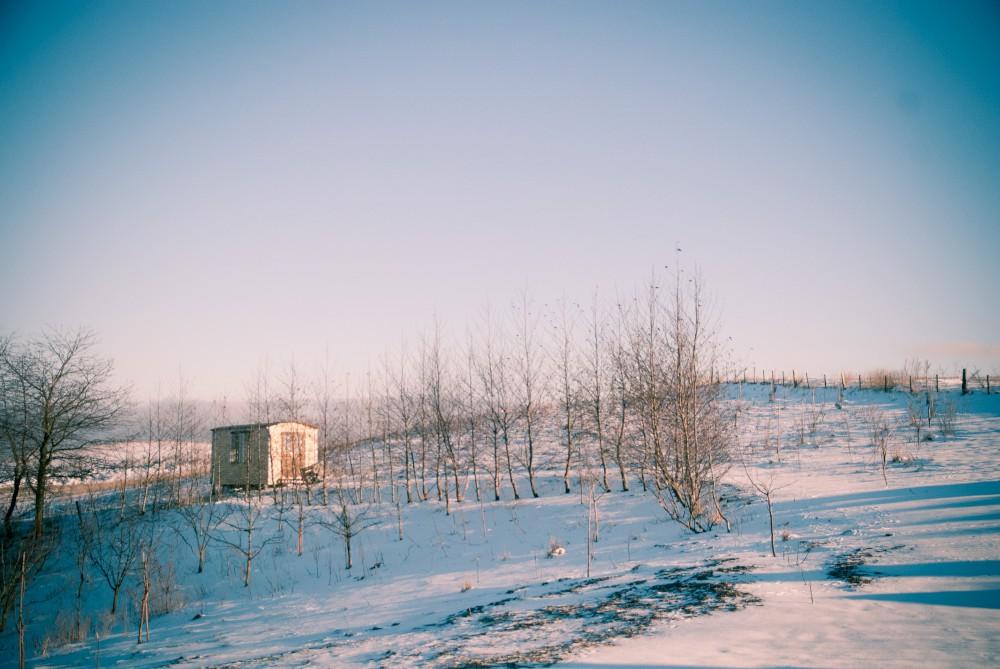 An old caravan on the hill. In the summer time farm workers live there. I think it sounds so romantic. A summer job on a farm for a couple of months, living in a caravan surrounded by beautiful hills.