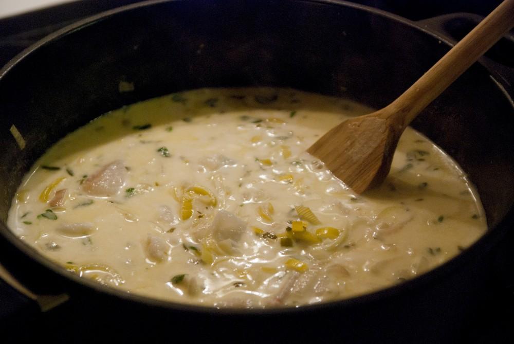 Then it was time to start with the cooking. I was head chef and together we made a fish soup with lots of white wine, cream and fresh thyme.