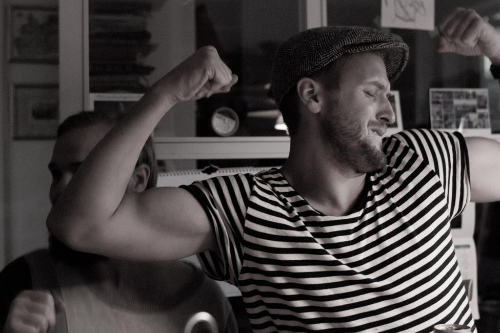 Erik och Sambon mätte muskler. Det verkar som det var lite extra jobbigt för Erik.