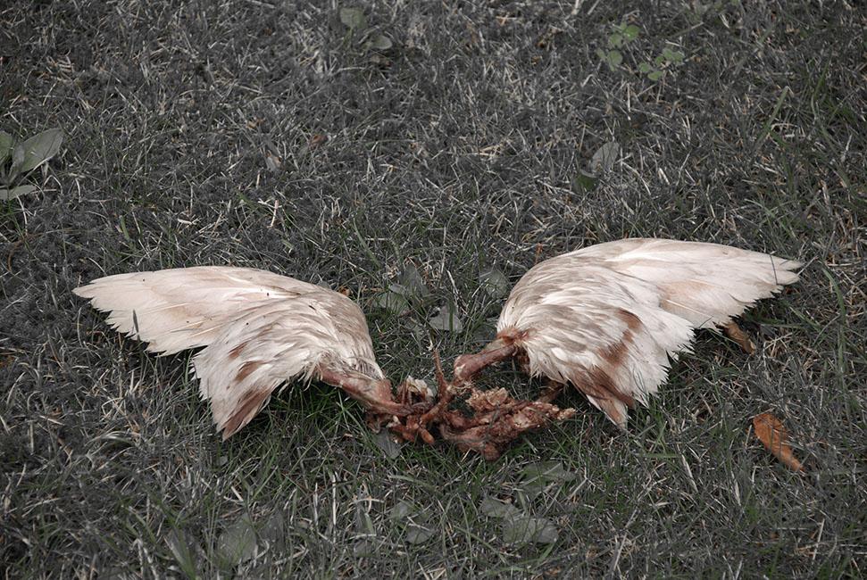 Vingarna lämnades kvar på marken. På en gräsplätt i ett blåsigt Biskopsgården spred hon ut sina vingar en sista gång.