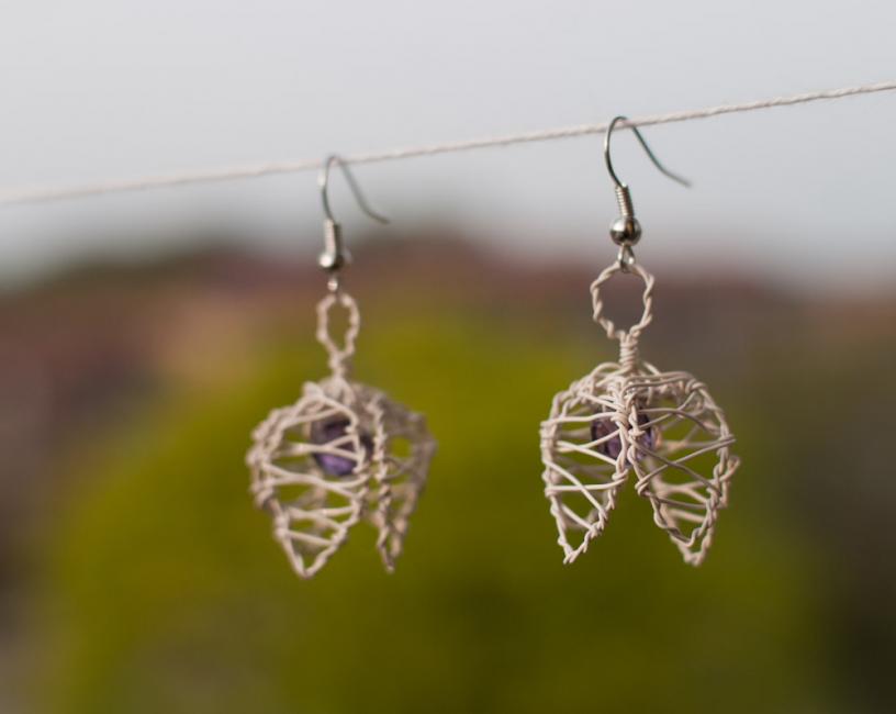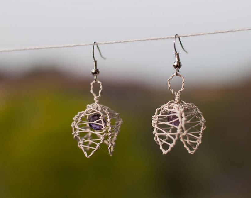 Igår drog jag med mig stegen ut på ena balkongen. Spände upp ett snöre mellan benen på stegen och hängde mina örhängen där. Det vajade lite i blåsten, och jag fick sikta för att inte få med balkongräcken och hustak i bild, men jag tycker ändå detta är bäst hittills! Tyvärr blev det inte lika fint med alla färger men de här vita ser ju underbara ut.