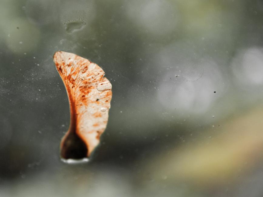 Varje gång jag varit iväg på fotoutflykt av olika slag så finns det alltid ett gäng foton i början på minneskortet som är en påminnelse om minuterna innan Det Stora Fotandet tar vid. Som Lönnäsan här. Just då är minneskortet tomt, just då känner jag starkt för en ensam lönnäsa på en bilruta. Men sedan, några timmar senare, är de fotona som bortglömda. Jag har gått helt upp i vad det nu är jag fotograferar och glömt vägen dit.
