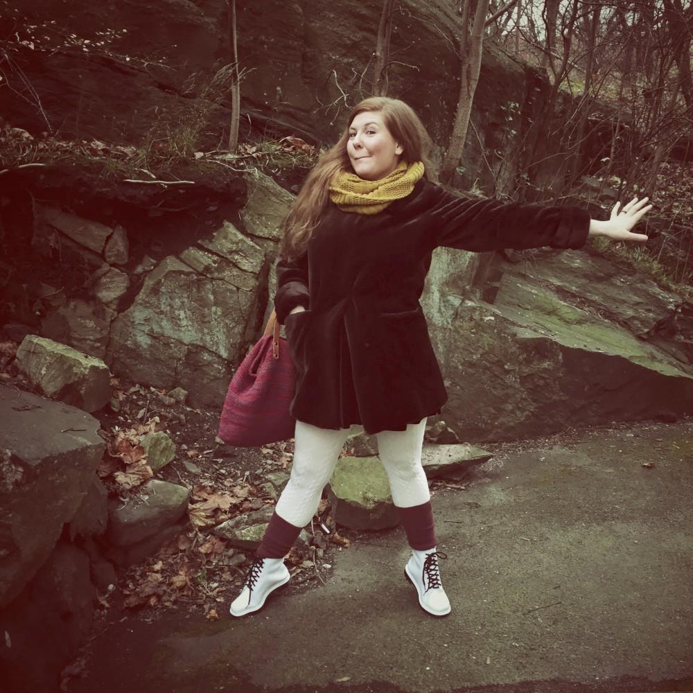 One in colour with me standing on tiptoes to get my tights into the photo, and one in black and white with me looking pensive.