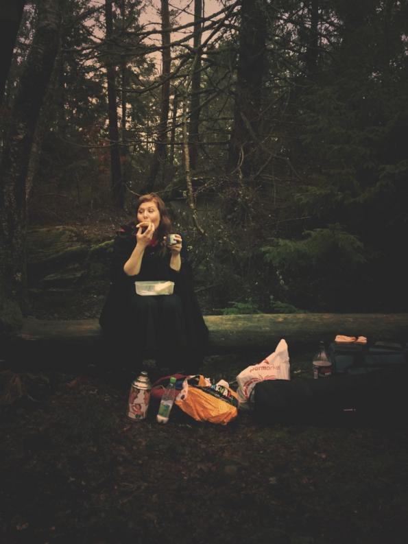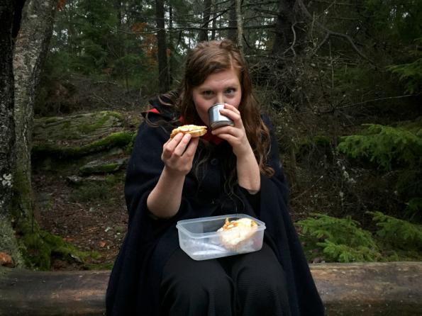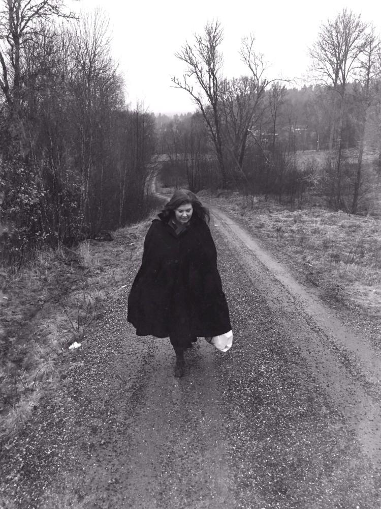 And then, on wednesday we went half an hour by car outside of Gothenburg, to Iglekärr Gammelskog that is one of the really old forests in this part of Sweden. We had decided that this was the place we wanted so we packed our car with camera equipment and I dolled up accordingly and had my cape on.