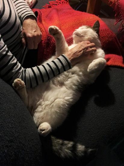 Fluffiness and velvet is not really a good match, but it worked out fine because as it happens there's not much fluff left in the cardigan anymore.