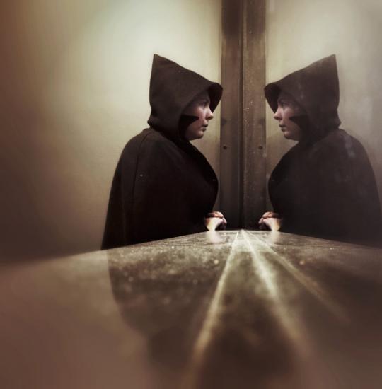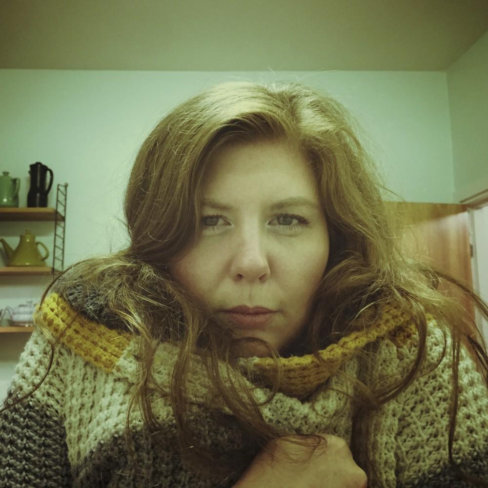 Two self portraits wearing the same clothes (that happen to be my favourite outfit at the moment). Brown sweater from H&M at least five years ago, velvet skirt from
