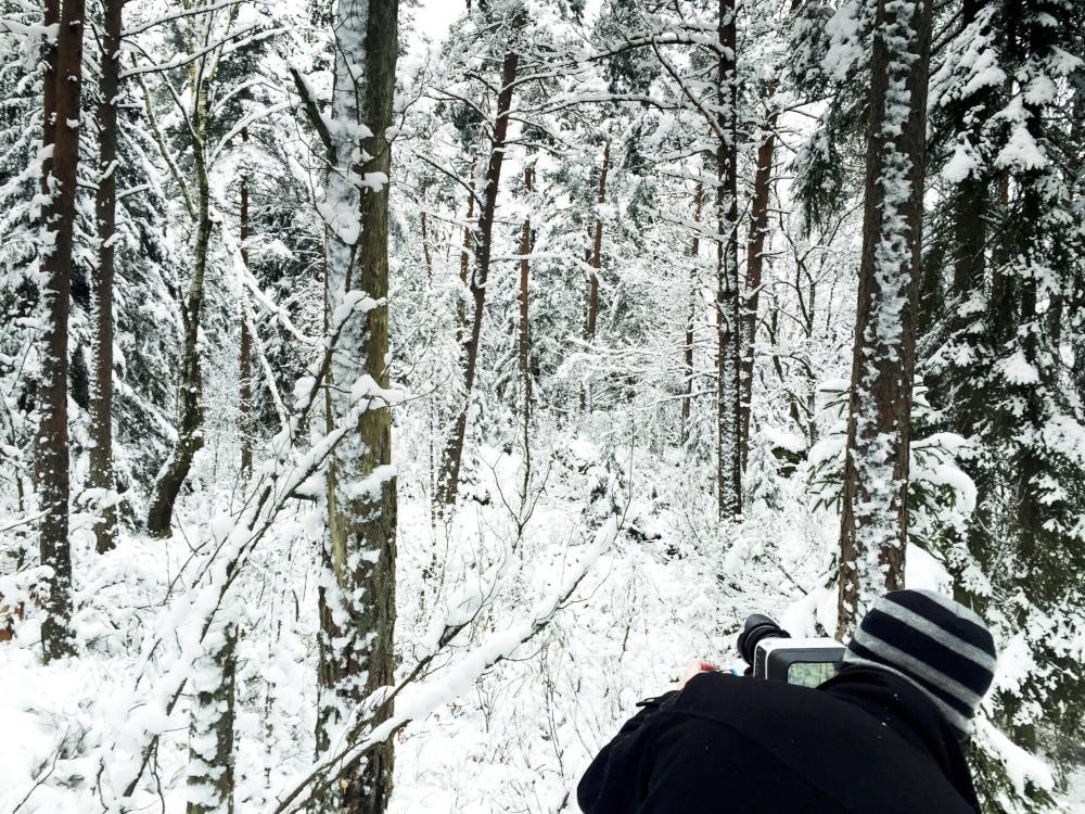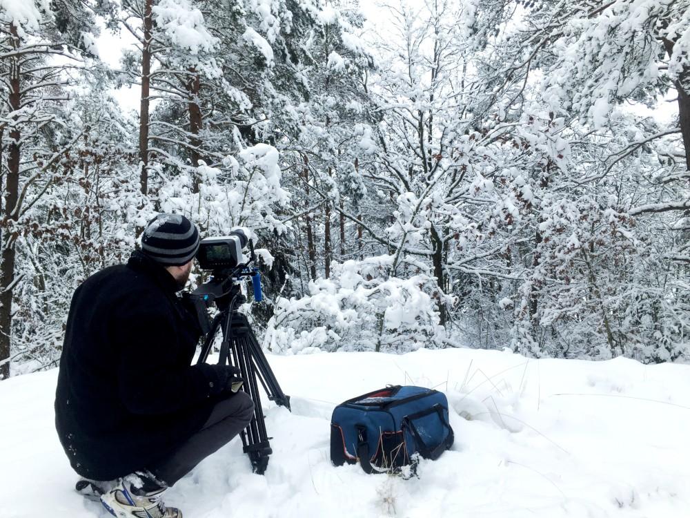 Yesterday David and I couldn't wait anymore! We wanted to go film in the woods, snow and cold weather be damned!