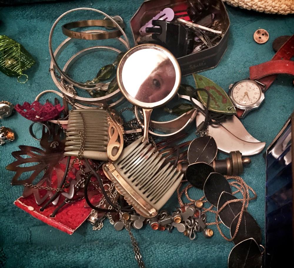 I got the itch to clean (happens once in a blue moon) and sorted though all my jewelry and knick knacks sitting on the bathroom floor, drinking coffee and listening to podcasts.
