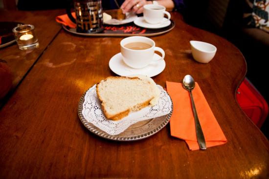 Toast with tahini (It needs to be of the organic brand Monki because there is just non like it. Tastes like peanut butter!) and banana. And coffee with milk in a pitcher.