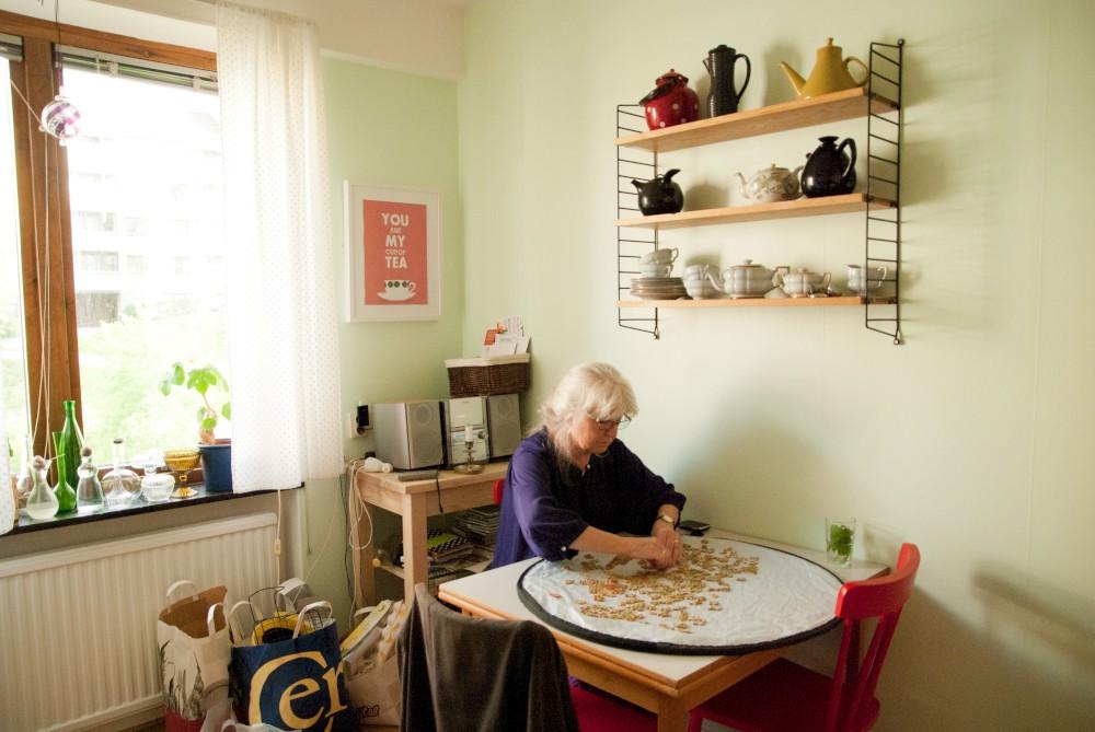 Frida, the director of Teater Esther, on one of our production meetings with all her important things within reach.
