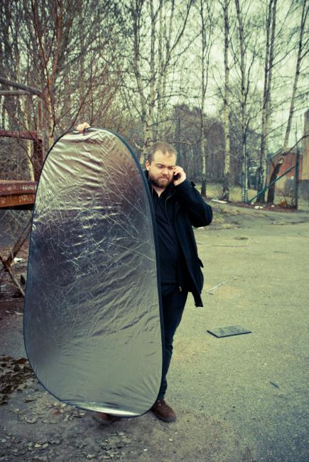 David ansvarade för reflexskärmen. När det ringde på telefonen var han dock inte så fokuserad längre. Jag störde honom med kameran lite kärleksfullt så där.