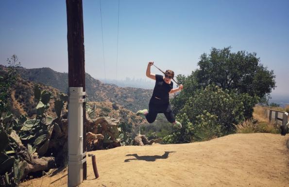 Jumping Pippi Longstocking style infront of the LA Skyline that was so pretty today.