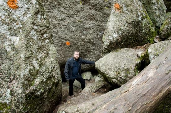 And that is part of the huge rock situated on top of the well. And David is just a teeny tiny human being next to it.
