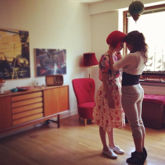This is Siv giving Ingrid a neck massage. Or Lovisa and Hanna. Hard to tell when they are in costume...
