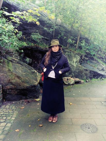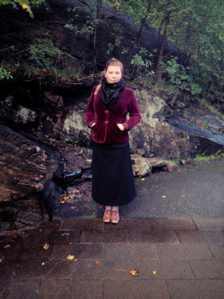 I wore my favourite hunter green hat, the velvet jacket I bought on a fleamarket in London ten years ago, my all time favourite shoes and PANTS! I think I've been wearing pants more these last two months than I have in my entire adult life. But the best part of my look that day was the bag. Have I told you about this bag? When my mom was a little girl, in the 50's, she used to have this as a school bag. When I was a kid I fell in love with it the moment I saw it and I remember how happy I was when my mom told me that I could bring it to school one day. She told me to be careful with it and I promised. It was a very proud moment fo me when I walked on to the school yard with the shiny black bag in my hand.