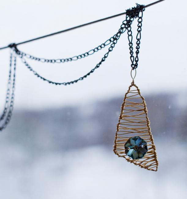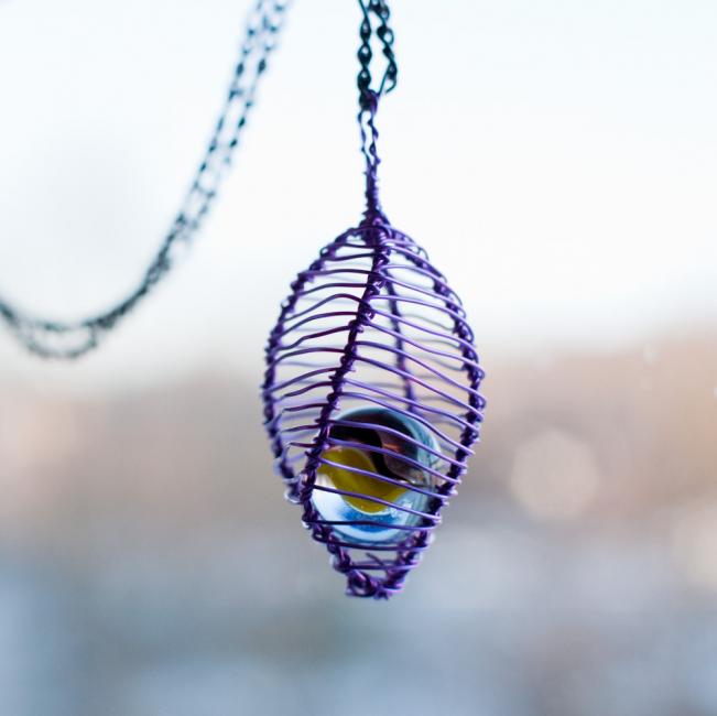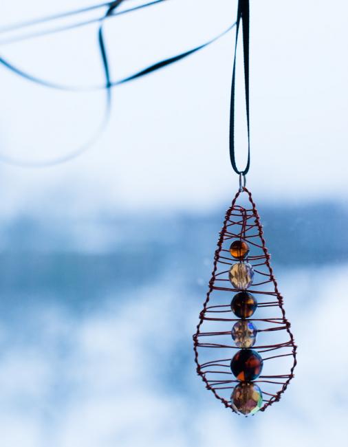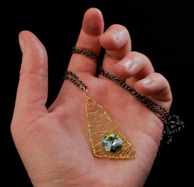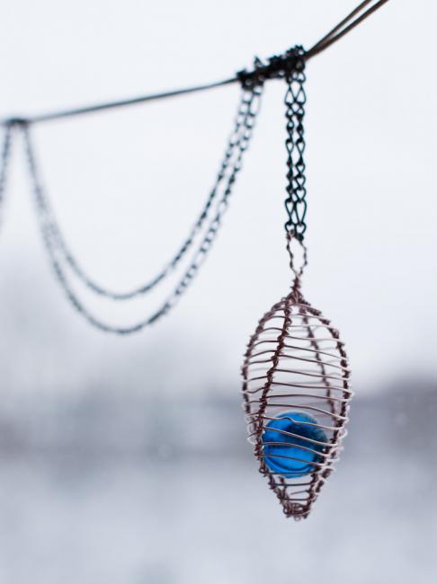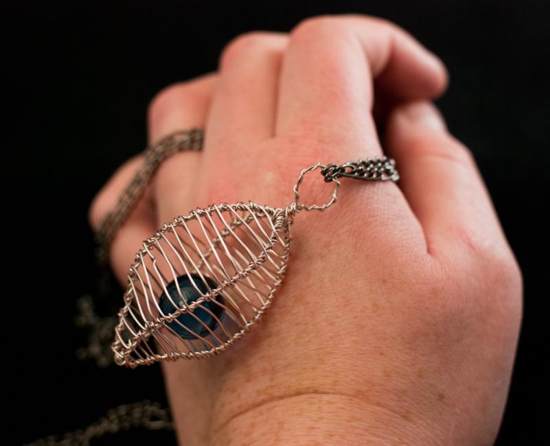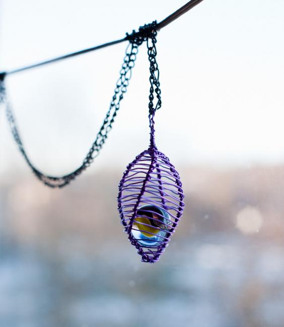 Jag tänker mig den här berlocken som ett kattöga man kan ha om halsen för de tillfällen man vill kika runt hörn på ett smidigt vis...