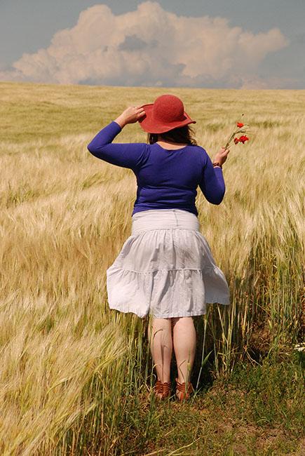 Vindarna fångade min hatt och fick kornet att bölja likt havet som låg bortom fälten. Jag drömmer om att gungas fram på rygg i ett kornhav. Blundande med solen på mitt ansikte och frasande, prasslande ljud av kornvågor i mina öron.