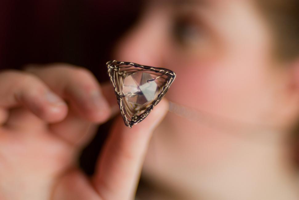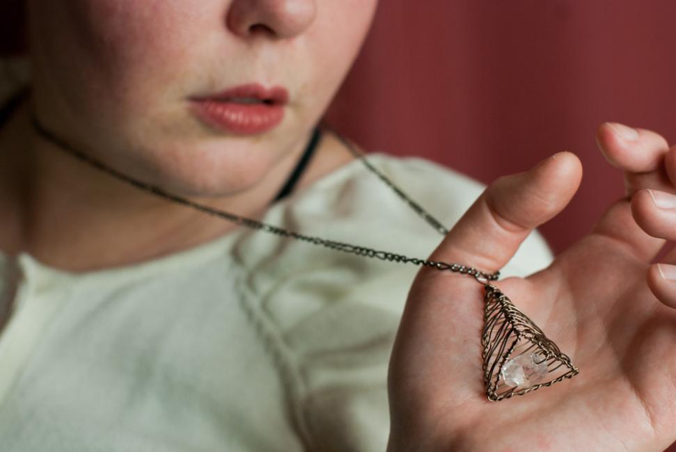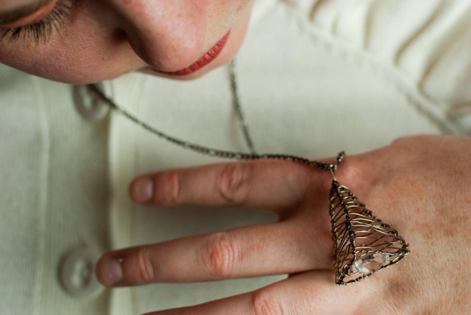 Fasen, jag är på rätt väg men den här sket sig också så fick jag till slut till det igår! Nu är Three Dimensions Pendant färdig och jag känner mig himla stolt över den. Älskar hur den ser olika ut i olika vinklar, hur skulptural den är. Ett litet konstverk i en halskedja.