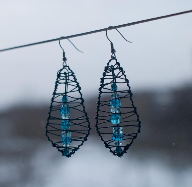 Ett beställningsjobb igen. Svarta, vridna burörhängen med röda tärningar inuti. Tjusiga som sjutton. Om jag får säga det själv.