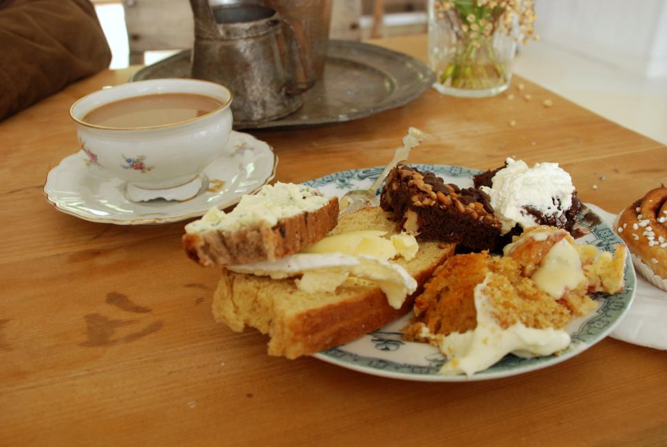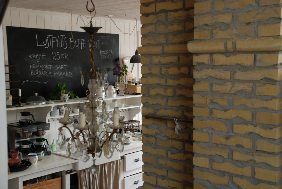 Efter loppis krävs fika. Vi åkte till ett fantastiskt fik långt ut på landet som heter Lustfyllt. Lite tramsigt namn, men buffén var inte att leka med. Oj oj oj. Bröd och sen goegoa kakor i vacker miljö. Jag fick fotofeber, som ni kan se.