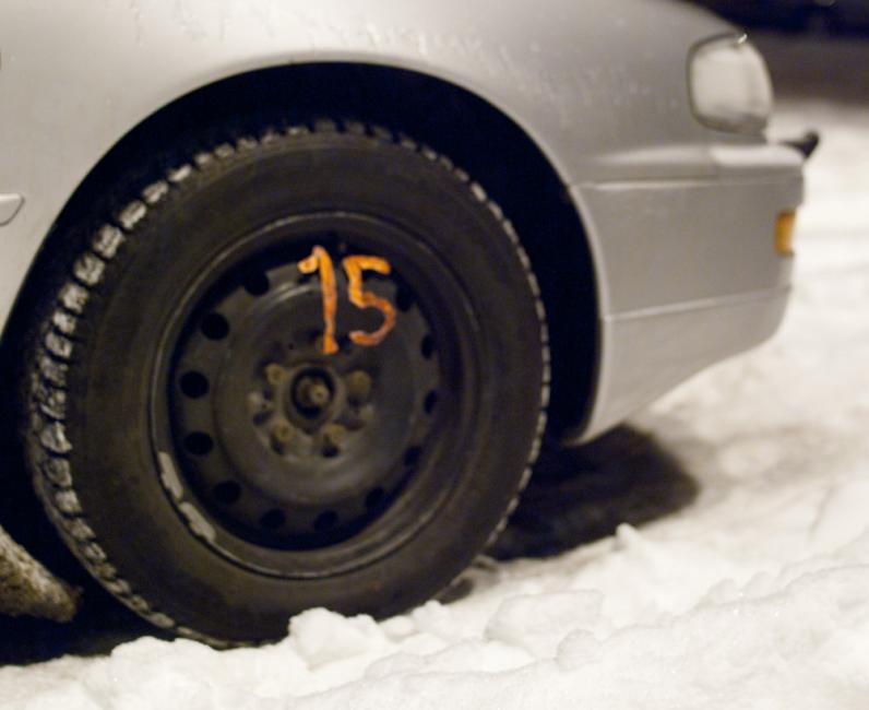 Idag är det bilens hjul. Och siffran är gjord av ihopknöcklad brun packtejp som jag använde för att försluta ett paket med. Sedan fick bilens hjul ta det paketet till posten.