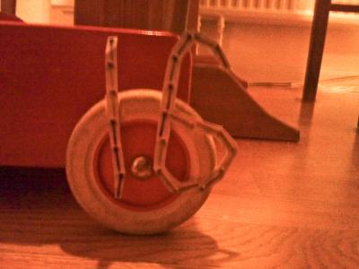 Dagens hjul är hjulet på en gåvagn som tillhör en gosse vid namns Elis. Elis tyckte inte att siffran 16 hörde hemma på hans vagn så så fort jag satt dit siffrorna drog han bort dem igen. Och så höll vi på ett tag.