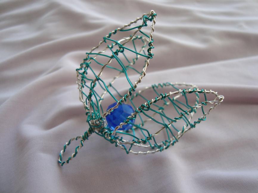 Tänkte att om det ska bli nåt av den får jag tänka om. Göra nåt annat av den. Jag ändrade lite på modellen och plockade fram en turkosblå tråd och en klarblå pärla. Och sen bara lät jag fingrarna jobba.